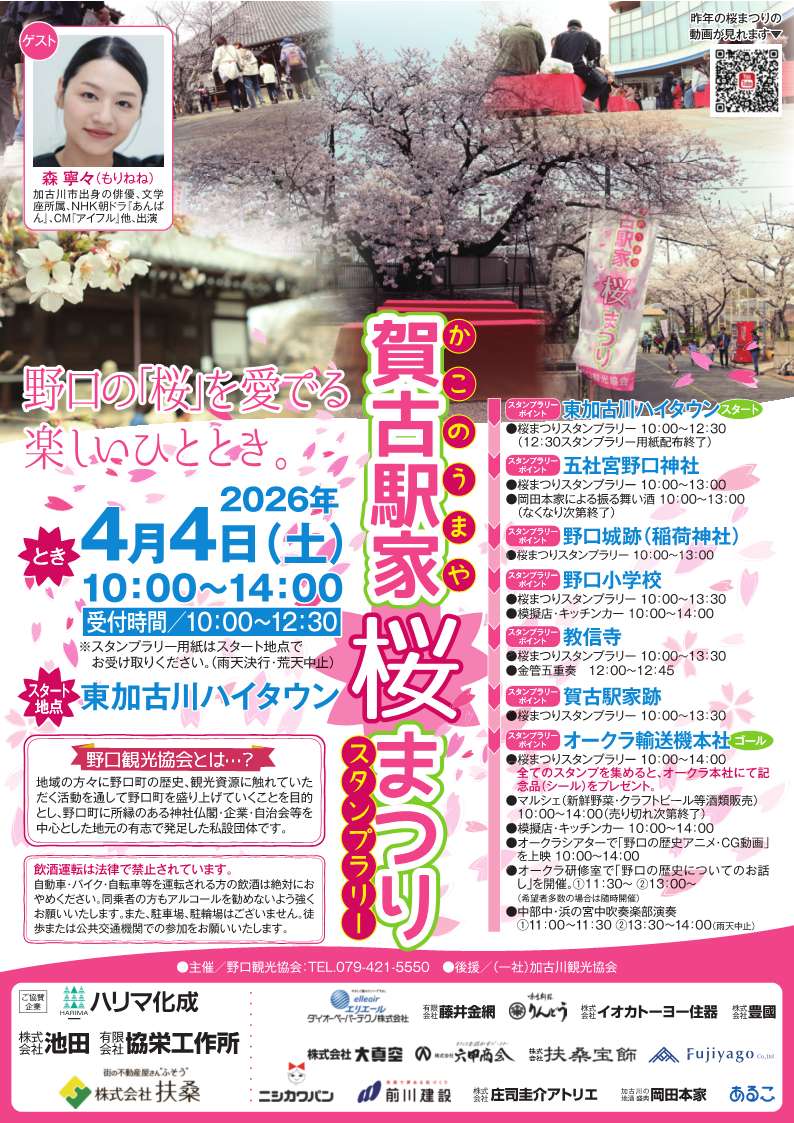 賀古駅家(かこのうまや)桜まつりスタンプラリーが4月4日(土)に開催されます🌸